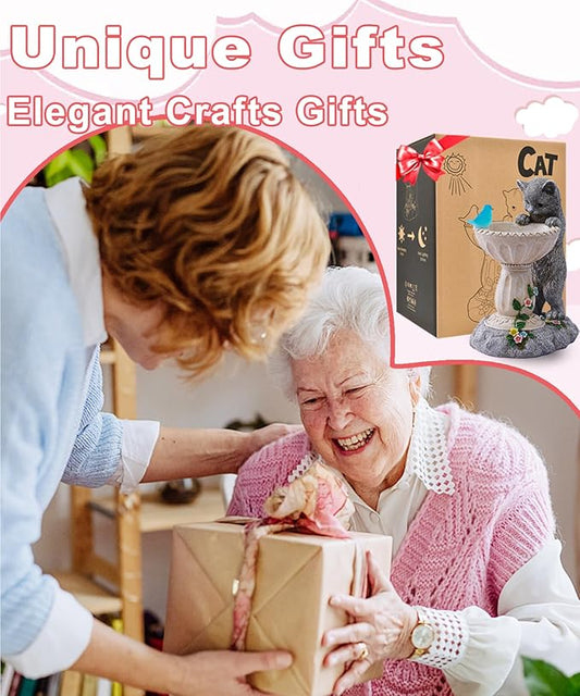 Solar Cat Statues for Bird Bath: Outdoor Sculptures for Garden Lawn Patio Yard Balcony Porch - Unique Gifts for Mother Grandma Women