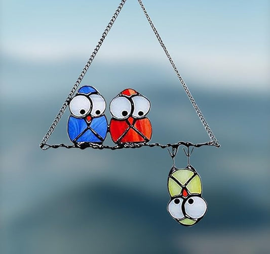 Multicolor Owls on a Wire High Suncatcher Panel, Bird Suncatcher for Windows Panels Hangings Hummingbird Glass Decoration for Wall Home Garden Decor Bird Owl Gift for Owl Lovers