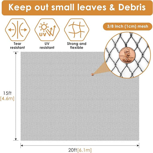 PACETAP Pond Netting Kit 15 x 20 Ft for Leaves, Heavy Duty Koi Pond Cover, Pool Protective Cover Netting with Stakes Protecting Koi Fish from Birds, Cats, Predators
