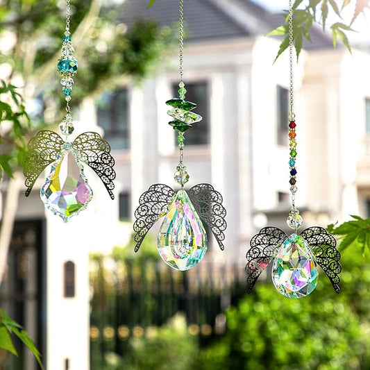 H&D HYALINE & DORA Metal Angel Wing Pendant with Rainbow Crystal Prisms Suncatcher Window Home Christmas Hanging Decor,Set 3pcs
