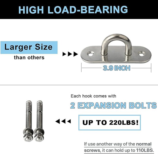 SAYAYO 6 PCS Pad Eye Plate Hooks U Ceiling Hook for Hanging Plants Outdoor Lights Swing Suspension Marine Hardware Staple Hook Loop with Screws Stainless Steel Wall Mount (Brushed Nickel
