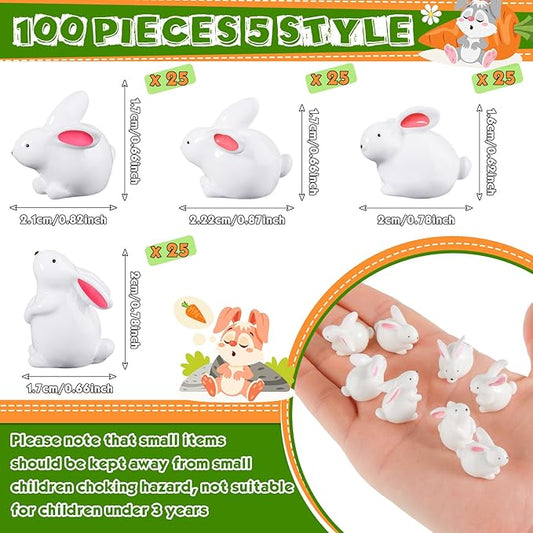 Marsui 100 Pcs Bunny Miniatures Figurines Rabbit Miniature Accessories Easter Garden Landscape Garden Rabbit for Easter Garden Accessories Dollhouses Decoration(Classic Rabbit)