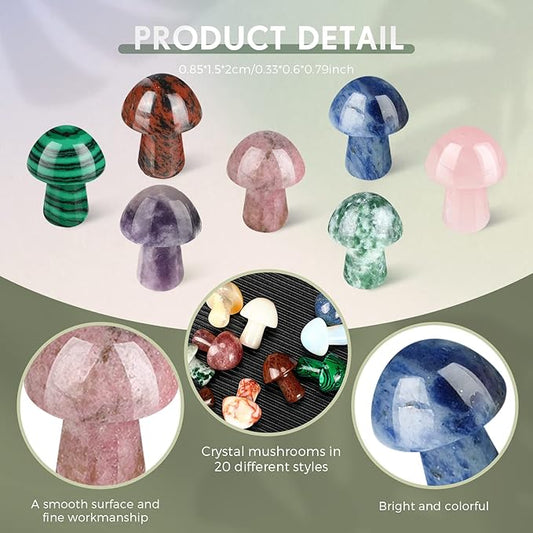 Nuanchu 120 Pieces Crystal Mushroom Sculpture Bulks Hand Making Gemstone Quartz Mushroom Polished Cute Stones Decor for Witchcraft Meditation Garden Home