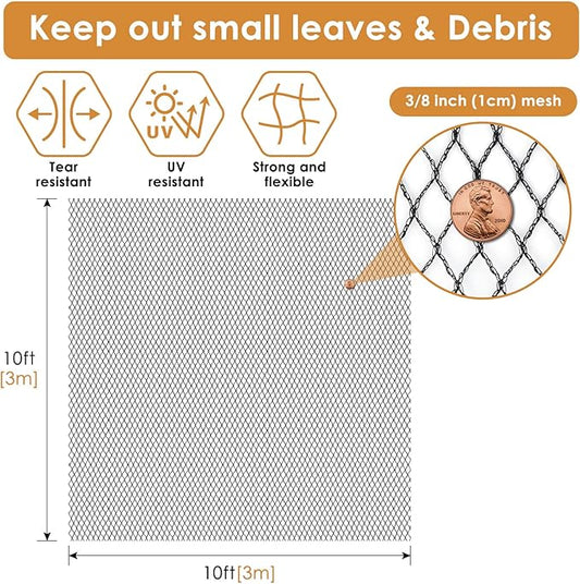 PACETAP Pond Netting Kit 10 x 10 Ft for Leaves, Heavy Duty Koi Pond Cover, Pool Protective Cover Netting with Stakes Protecting Koi Fish from Birds, Cats, Predators