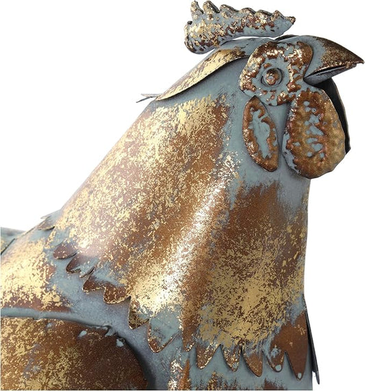 Deco 79 Metal Chicken Decorative Garden Sculpture Patina Garden Statue, Outdoor Sculpture 8" x 13" x 13", Bronze