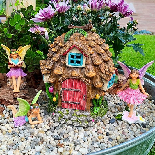 Mood Lab Fairy Garden - Pinecone Fairy House Kit of 4 pcs - Miniature Figurines & Accessories Set - Outdoor or House Decor