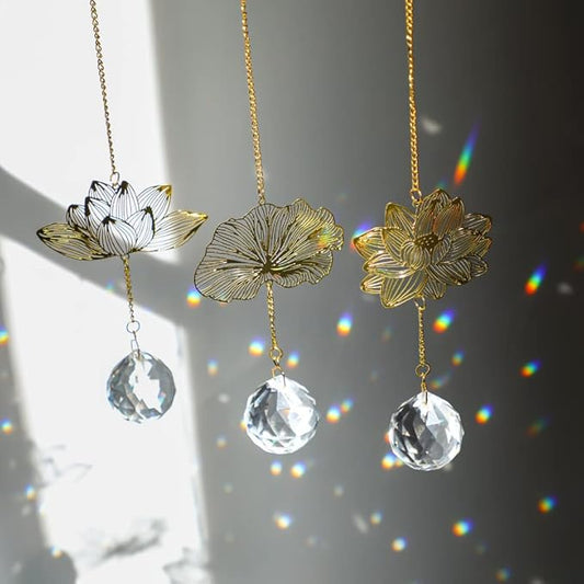 H&D HYALINE & DORA Suncatchers Lotus Leaf Pendant with Crystal Prisms Window Hang Sun Catcher Ornament Rainbow Maker for Home Garden Rearview Mirror Charms, Pack of 3