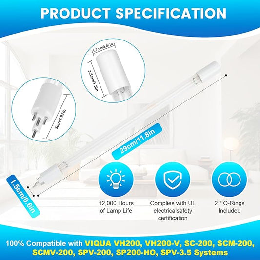 S200RL-HO for VIQUA Replacement Üν Lamp for VIQUA VH200 System, Üν Bulb 100% Compatible with VIQUA VH200, SC-200, SCM-200, SPV-200, SP200-HO, SPV-3.5 Systems, Lamp Life 18,000h | OEM Quality Premium