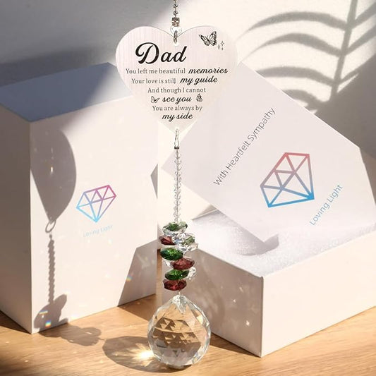 Memorial Suncatcher Gifts for Loss of Dad, Sympathy Gifts for Loss of Dad, Dad in Heaven Memorial Crystal Suncatcher for Window Home Decor (Dad)
