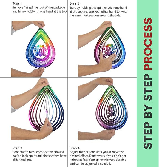 VP Home Lotus Teardrop Wind Spinner - 3D Metal Outdoor Hanging Lotus Decor for Garden and Yard - Kinetic Wind Spinners with S-Hook, Durable Weather-Resistant Steel - 8.5 x 15 Inches