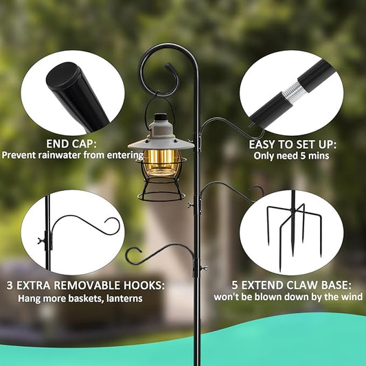 108 Inch Shepherds Hooks for Outdoor 2 Pack, Bird Feeder Poles with 4 Hooks, Shepherds Hook for Bird Feeders Outside with Base, Garden Pole for Hanging Plant Baskets, Weddings Decor (108 Inch)