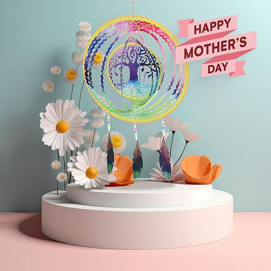 VP Home Tree of Life Dreamcatcher with Feathers Kinetic Wind Spinners - Native American Garden Decor - Sculpture Spinner for Yard and Garden Outdoor - Metal Large Hanging Dreamcatcher - 10"W x 16.5"H