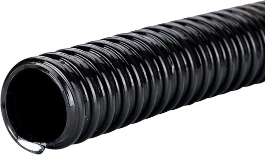 Pond Hose ID 1” × 25ft Black Corrugated Flexible Reinforced PVC Hose Vinyl Tubing for Pond Pump Fountain Garden Waterfall, Non-toxic & Kinkproof, with 2 clamps