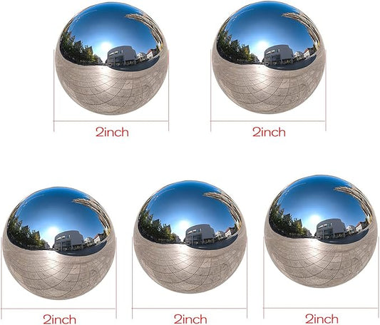 Nerien Gazing Ball, 2 Inch Stainless Steel Garden Mirror Globe, Polished Ornament Sphere, Hollow Floating Reflective Hemisphere, for Home Outdoor Pond Housewarming Swimming Decoration, Silver, 5pcs
