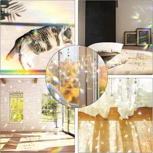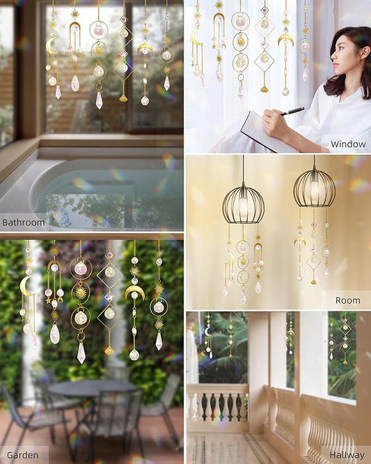 6 Pack Crystal Suncatcher,Hanging Sun Catchers with Crystals, Colorful Crystals Suncatchers Rainbow Prisms for Windows Christmas Tree Home Wedding Party Car Indoor Outdoor Garden Decor
