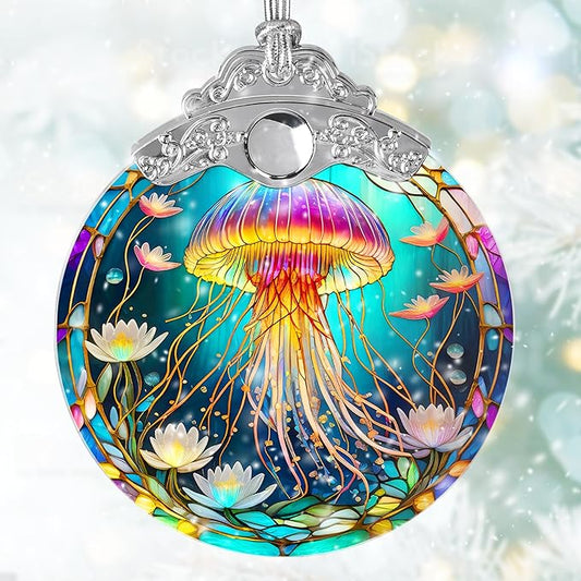 Stained Glass Suncatcher, Jocidea Jellyfish Ornament, Christmas Ornaments, Holidays Ornaments, Christmas Tree Decor, Jellyfish Decor for Home, Jellyfish Gifts
