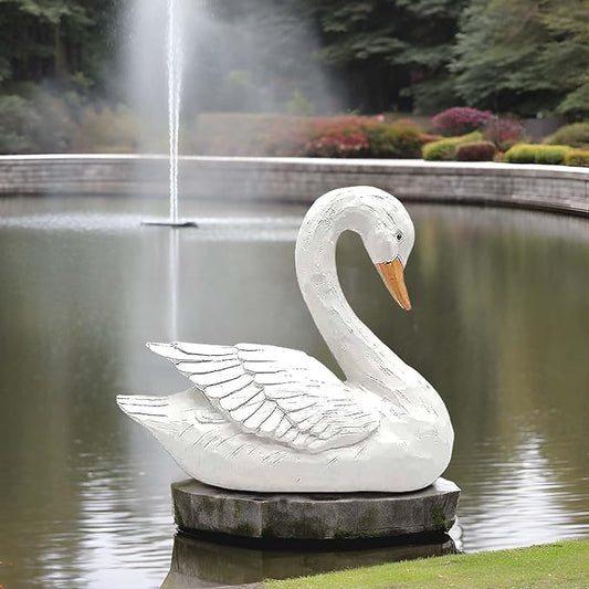 White Swan Figurine - Home Decor Exquisite Sculpture Resin,Artistic White Goose Statue Craft for Elegant Outdoor Garden and Yard Decoration, 7.48 Inches