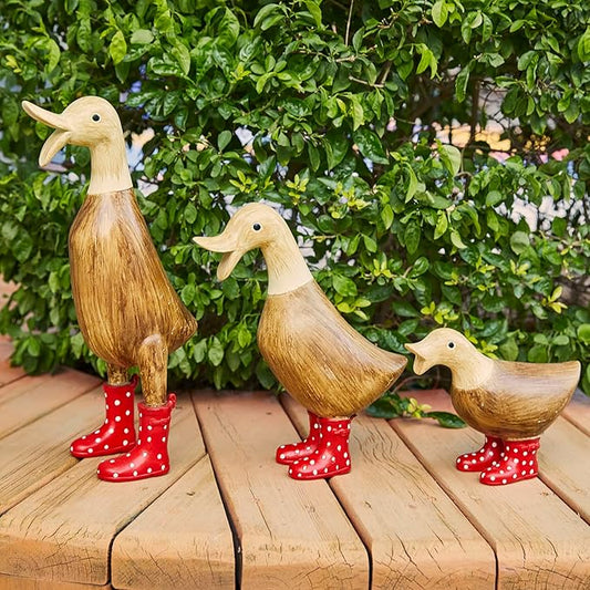 GUTE Duck Yard Decorations Yard Art Garden Puddle Ducks with Spotted Wellies Boots, Set of 3 - Garden Decor Statues, Duck Figurine Statue - Waterproof Indoor & Outdoor Lawn Gnome Ornament
