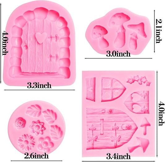 Fairy Garden Door Silicone Molds, Enchanted Vintage Gnome Home Window Door Fondant Molds, Mushroom Flower Leaf Chocolate Baking Molds for Cake Decoration Cupcake Topper Candy Clay Resin