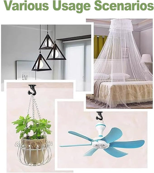 Ceiling Swag Hook Sets - Heavy Duty Hooks with Mounting Hardware for Hanging Plant, Ceiling or Extender Chains - Easy Install with Screws/Brackets (10 pcs - Black)