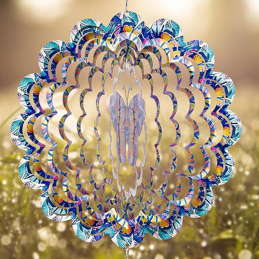 TUOKING Mandala Wind Spinners Outdoor Metal 3D Hanging Art Wind Spinner 12 Inch Stainless Steel for Yard and Garden Decoration Worth Gift for Women