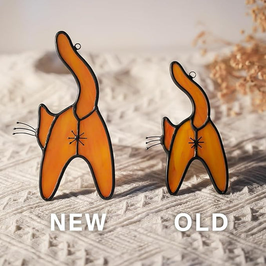 Orange Cat Stained Glass Suncatcher for Window,Funny Cute Cat Decor Stained Glass Window Hanging,Cat Gifts for Cat Lovers,Cat Themed Gifts for Women Friends Girl Kids