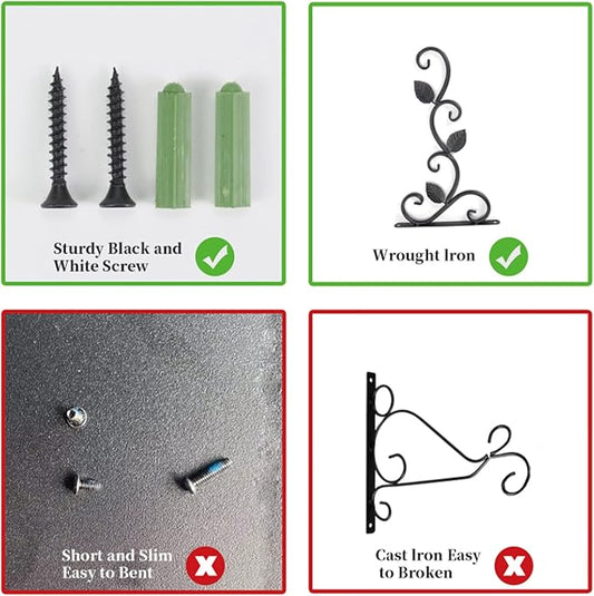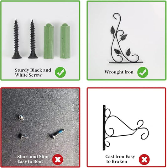 4 Leaves Style Metal Hanging Plant Brackets 12 inches x 9 inches, Pack of 2, Wall Mount Plant Hangers, Planter Hooks for Flower Baskets, Bird Feeders in Corridor/Patio/Porch/Garden