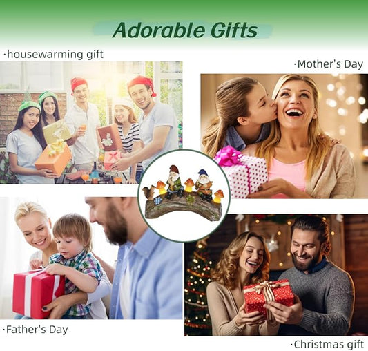 Funny Garden Gnome Statue Solar Powered Mushroom Figurine with Squirrel Gnome Durable Resin Outdoor Decoration for Patio Yard Lawn Ornament Housewarming Gift