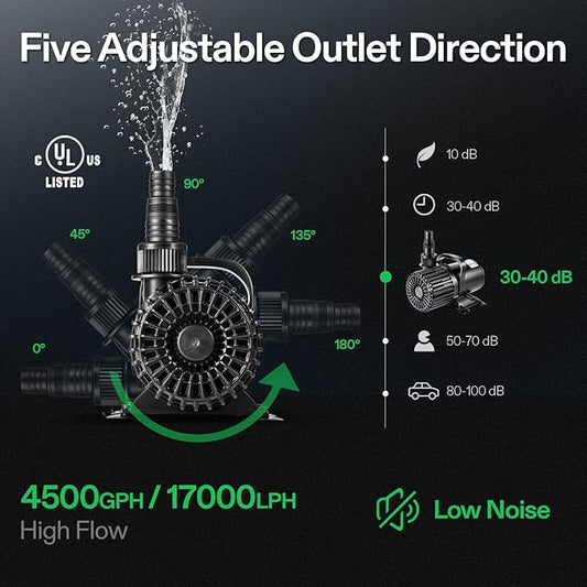 VIVOSUN 4500 GPH Submersible Water Pump, 220W Pond Pump, Ultra Quiet Aquarium Pump with 19FT. Lift Height for Pond Waterfall, Fish Tank, Statuary, or Hydroponics