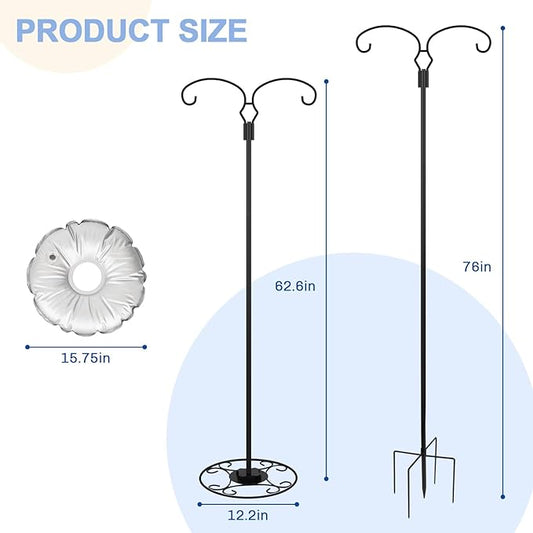 Liitrton 62.6 Inch Shepherds Hooks for Outdoor, Adjustbale Double Shepherds Hooks Hummingbird Feeder Stand Bird Feeder Pole Wind Chime Stand with Round Base, 4 Prongs Base and Water Weight Bag