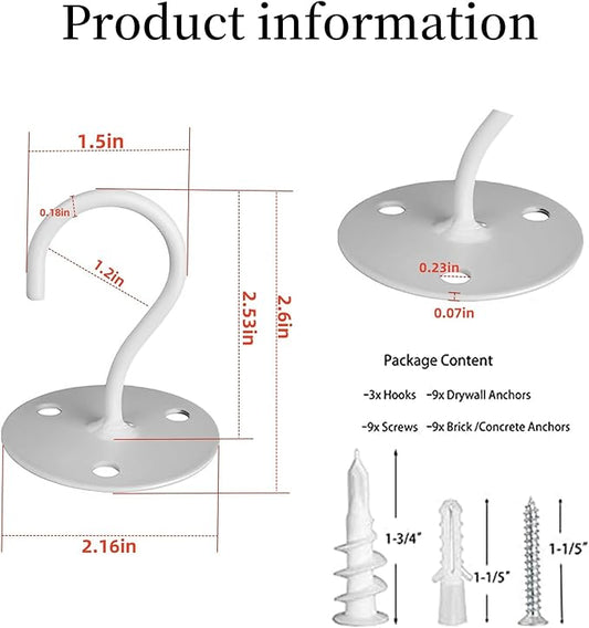 Ceiling Hooks for Hanging Plants- Metal Heavy Duty Wall Mounted Hangers for Hanging Bird Feeders, Planters, Wind Chimes, Include Professional Drywall Anchors (5 Pack) (Bright White)