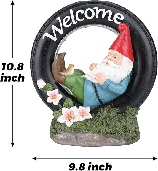 WONDER GARDEN Gnome Garden Decor for Outside - Welcome Gnome Solar Powered LED Light Outdoor Decor, Gnomes Statues Outdoor Funny Resin Garden Sculpture Decorations for Patio, Lawn