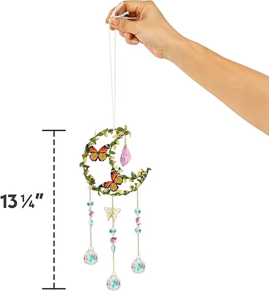 Crystal Suncatcher for Windows - Moon Shaped with Enchanting Butterfly Design - Sun Catchers Indoor Window - Hanging Crystal Wind Chimes, Rainbow Maker Gifts, Prism Suncatcher, Window Decor