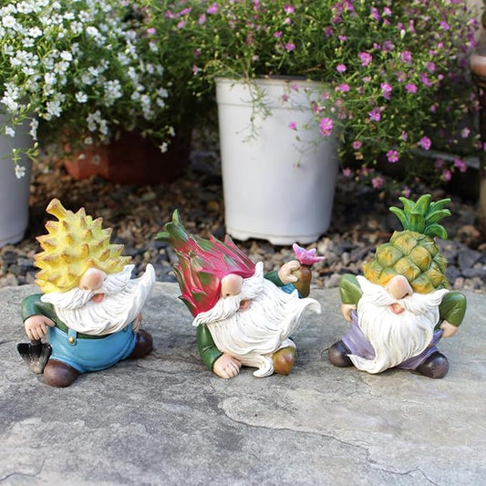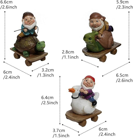 Set of 3 Mini Garden Gnome Statues - Resin Figurines for Indoor and Outdoor Decoration - Whimsical Mini Ornaments for Home, Patio, Yard, and Garden Decor