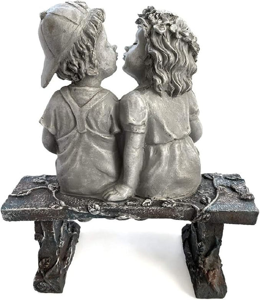 Lily's Home First Kiss Resin Garden Statue, Little Girl and Boy Kissing Yard Miniature Figurine,Small and Exquisite, 9 Inch