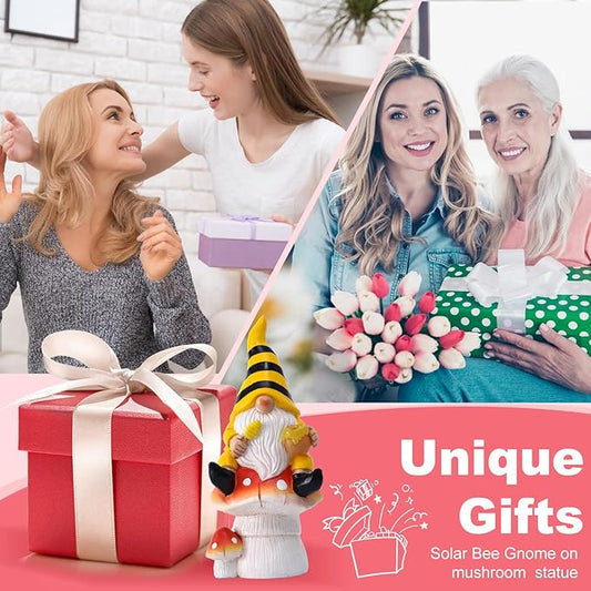 Hodao Spring Resin Garden Bumble Bee Themed Gnome Decorations-Solar-Powered Radiance-Honey Gnomes World Day Gifts Summer Lawn Garden Porch Sculptures & Statues Decorations