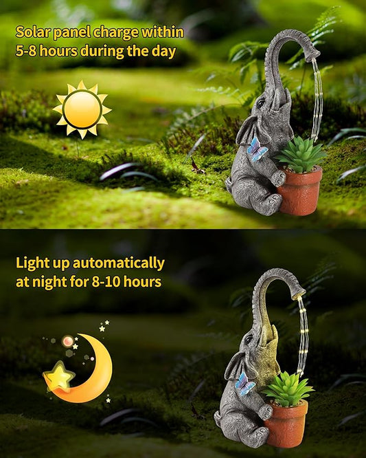 iStatue Solar Elephant Figurine with Succulent Plant Pot - 11'' Hand-Painted Lifelike Resin Lawn Ornaments Statue for Yard Art Garden Decor Gifts (Elephant)