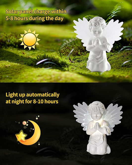 iStatue Solar Praying Cherub Angel Light with Fibre Optic Wings - 7.1'' Sympathy Remembrance Memorial Gift for Grave Ornaments Garden Decor (Kneeling Angel)