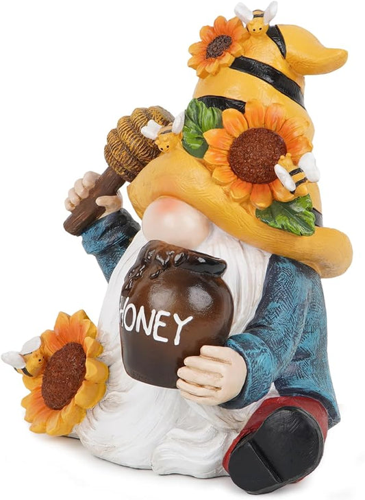 iStatue Garden Gnomes Outdoor Clearance with Solar Bee Lights - 9.5'' Resin Figurine Honeycomb Sunflower Spring Summer Decoration for Home Garden Decor Lawn Ornaments (Mr Bee Gnome)