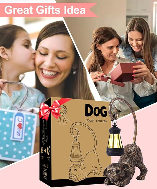 Garden Dog Statues Outdoor Decor, Solar Lights Outdoor Statue Garden Decorations Solar Dog Ornaments for Patio, Lawn, Yard Art Decoration, Housewarming Garden Gift