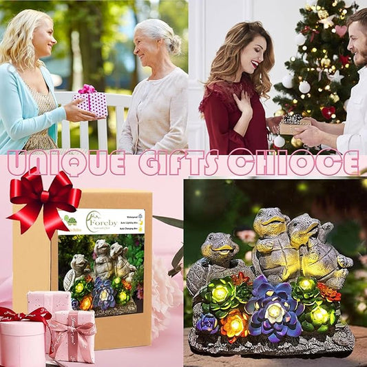 Solar Turtle Garden Statues Outdoor Decor- Birthday Gift for Mom from Daughter, Tortoise Figurine Garden Decor for Outside Yard Art for Housewarming Gift