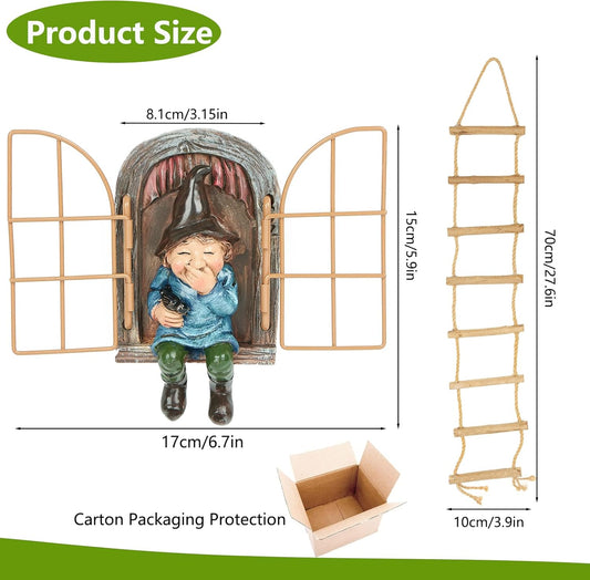 Garden Gnomes Decoration Outdoor Tree Faces Decor with Hanging Ladder for Yard, Elf Out The Door Tree Hugger Resin Garden Sculpture Peeker Yard Art Ornament Whimsical Gnome Decor for Patio Yard Lawn