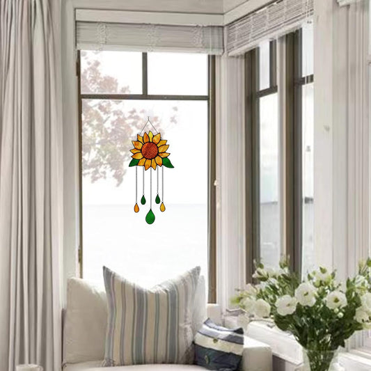 Sunflower Stained Glass Window Hanging,Sunflower Birthday Party Decorations,Outdoor Suncatcher for Patio,Kitchen and Garden Decor,Sunflower Gift for Mom,Women and Grandma