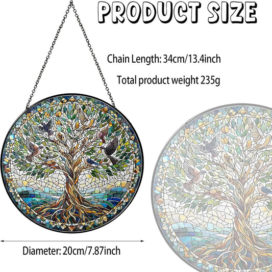 Tree of Life with Birds Sun Catcher RVEAFA Stained Glass Window Hanging Birds Lover Gifts for Women Wall Decor Handmade Sun Catcher Decoration for Garden Home Housewarming Gifts(20 * 20cm