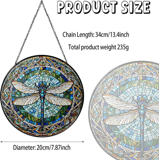 Dragonfly Sun Catcher Dragonfly Gifts for Women Stained Glass Window Hanging Sun Catchers Indoor Window Wall Decor Handmade SunCatcher Decoration for Garden Home Housewarming Gifts(6 * 6 inch)