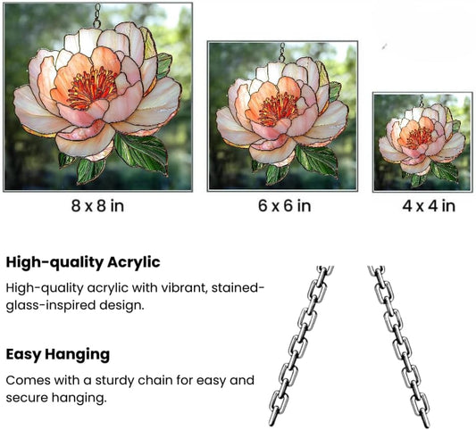 Peony Birth Flower Acrylic Suncatcher Faux Stained Glass Window Hanging Birthday Gift Floral Gift for Plant Lovers