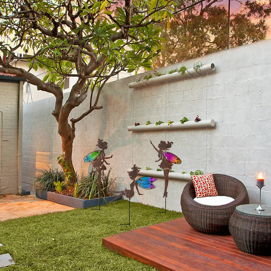 Metal Fairy Garden Stakes Decor,Charming Fairy with Colorful Wing Metal Stakes,Yard Art,Garden Outdoor Lawn Pathway Patio Ornaments,Outdoor Decor,Garden Decor
