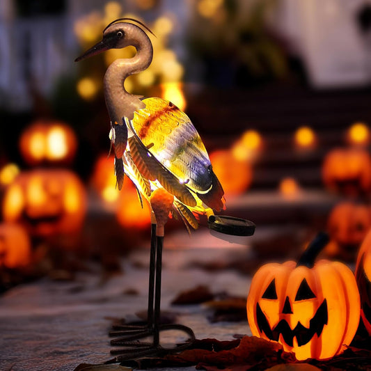 HONGLAND Solar Metal Crane Statue Garden Heron Sculpture, Glass Outdoor Heron Yard Art Coastal Ocean Bird Decor Lawn Ornament for Backyard Porch Patio Decor(24 Inch)
