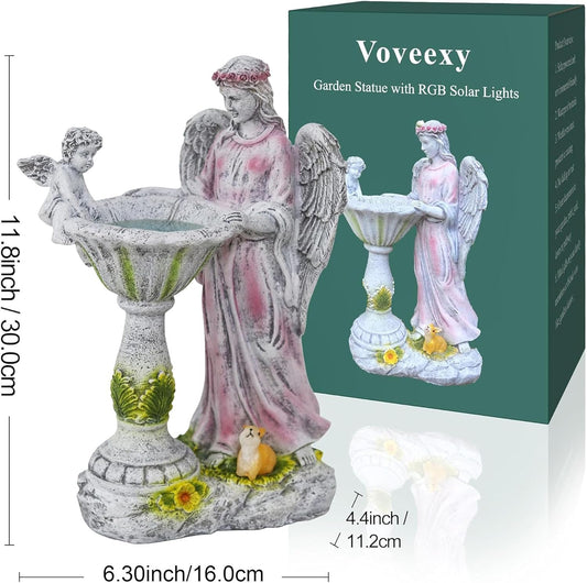 Solar Angel Figurine with Color Changing Light - Resin Statue Ornament for Outdoor Decor, Patio, Lawn and Housewarming Gift