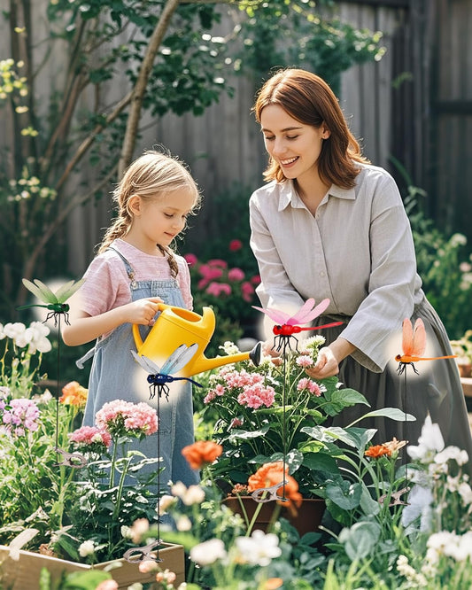 8PCS 3D Dragonfly Garden Decor Clips - Realistic Outdoor Insect Ornaments for Plants, Stakes & Fences | Fly Deterrent & Whimsical Yard Art